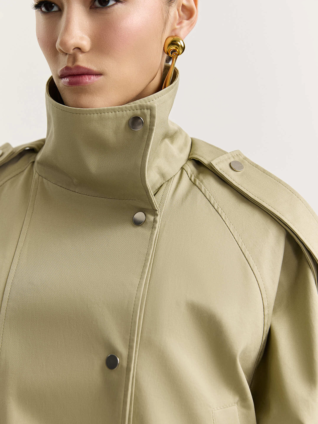 Укороченная парка из плотного итальянского хлопка с водоотталкивающими свойствами.