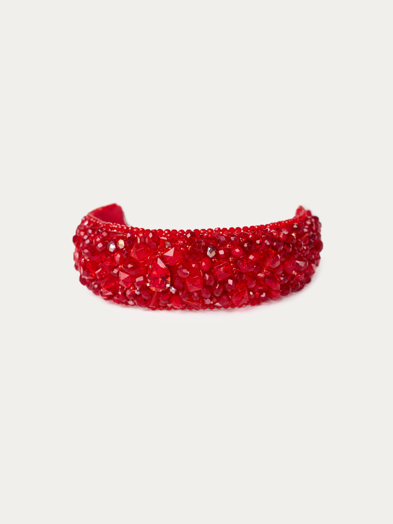Мастерская ручная сшивка тонкой мононитью обеспечивает безупречную обработку и аккуратность каждого стежка. Декор составлен из чешского стекла Lux: бриолеттов, биконусов, ронделей и бусин, отполированных огнем. В центре — сияющий кристалл производства Саудовской Аравии, добавляющий легкий оттенок восточной роскоши.