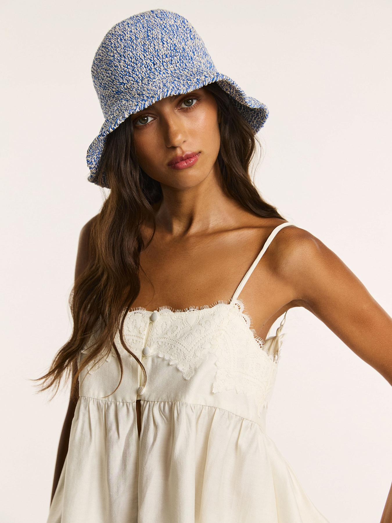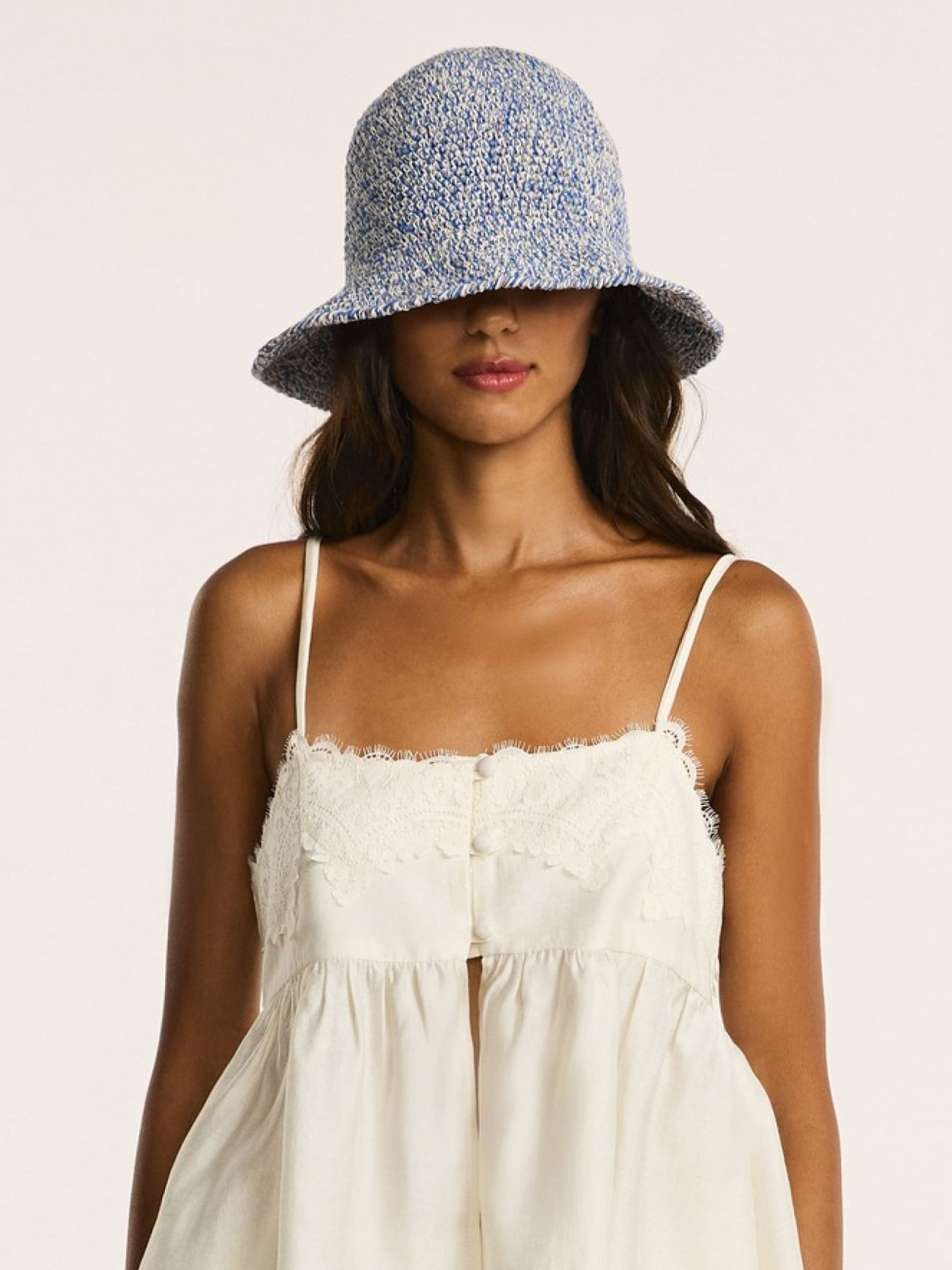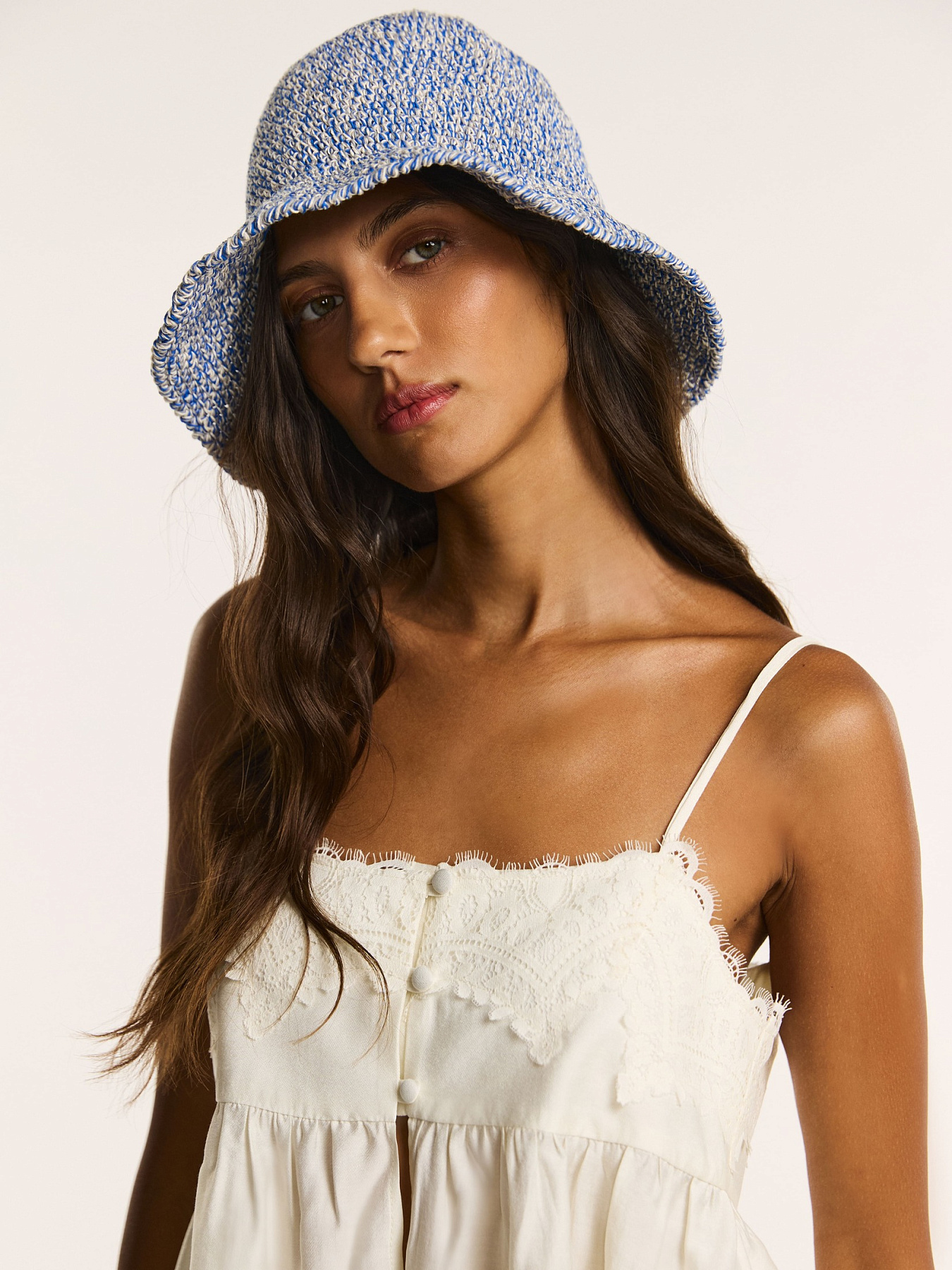 Панама выполнена полностью вручную из 100% дышащей хлопковой пряжи в оттенке голубой меланж.