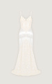 Платье макси на тонких регулируемых бретелях, выполненное из двух тканей-компаньонов: итальянского шелка с вискозой и ткани с плотно нашитыми пайетками сливочного оттенка.