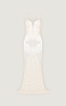 Верхняя часть юбки выполнена из итальянского шелка с вискозой в молочном оттенке, нижняя часть — из той же пайетки, что и лиф. Юбка имеет расширение от колена и напоминает силуэт трампет; необходимая глубина раскрытия достигается также за счет аккуратного шлейфа по спинке.