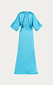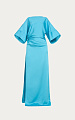 Платье макси из итальянского кади в бирюзовом оттенке. Вырез и цельнокроенный рукав с широкой манжетой создают чистый, собранный верх. По линии талии платье собрано в узел сбоку — этот прием формирует полуприлегающий силуэт, а драпировка мягко ложится в складки и подчеркивает линию бедра.