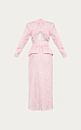 М: Обхват груди: 102 см, обхват талии: 75 см, обхват бедер: 103 см. Длина по середине спинки: 130 см, длина рукава: 62,5 см, ширина пояса: 7 см, ширина стойки: 3 см, длина юбки: 87 см.