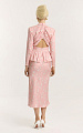 Главный акцент — спинка: планка на обтяжные пуговицы и прорезные петли дополнена сборкой, создающей мягкие складки. Планка заканчивается на середине спины и переходит в треугольный вырез, деликатно открывающий спину.