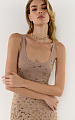 Платье в бельевом стиле, выполненное в двух слоях: из эластичной сетки со стразами и вискозного трикотажа в нюдовом бежевом оттенке, который мягко подстраивается под тон кожи.