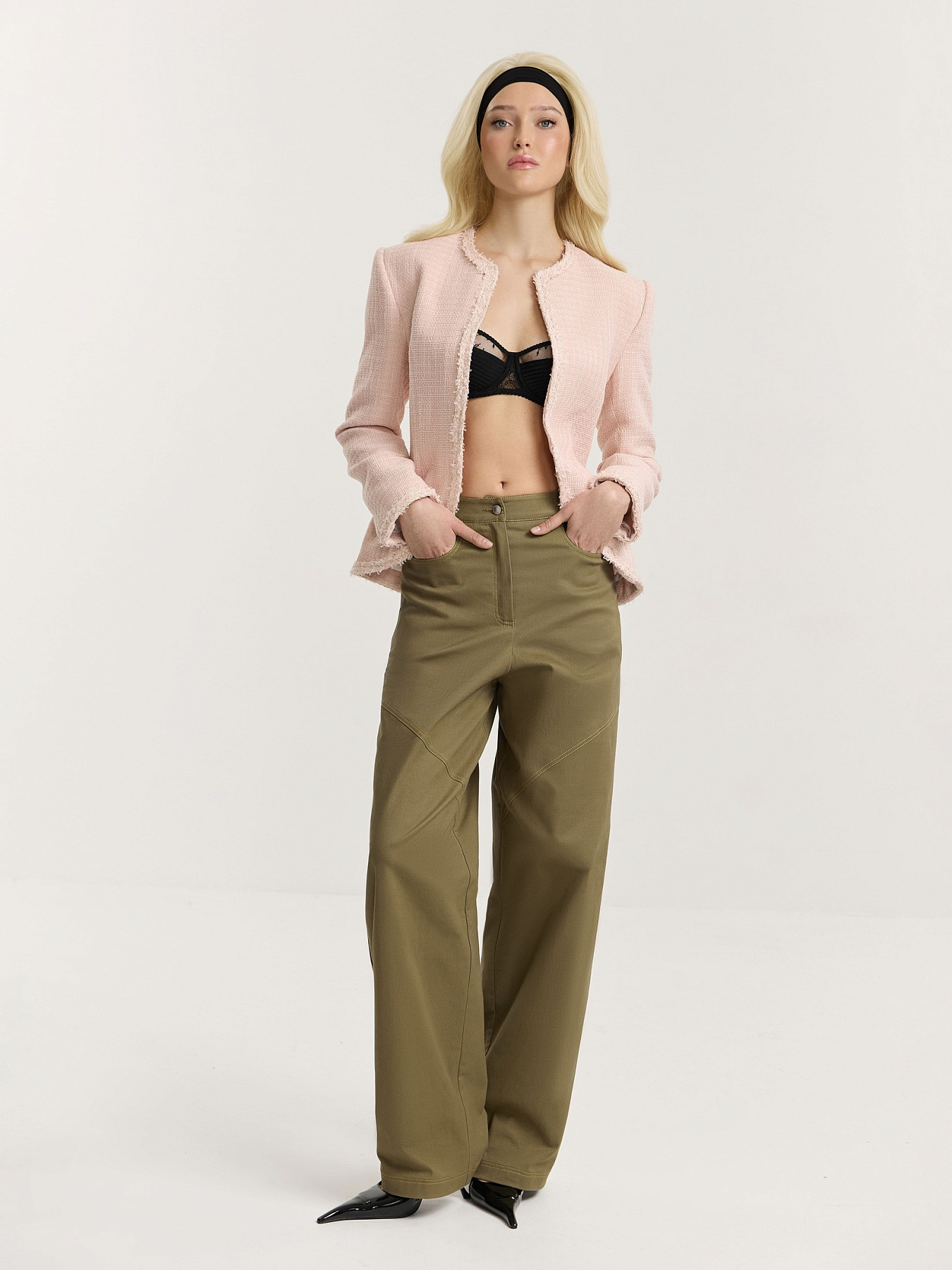 Выделенная линия плеча формируется подплечниками, подчеркивая собранный, аккуратный силуэт.