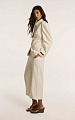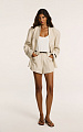 Модель выполнена из итальянского льна с добавлением вискозы: ткань средней плотности хорошо держит форму, формируя четкий силуэт с мягкими линиями.
