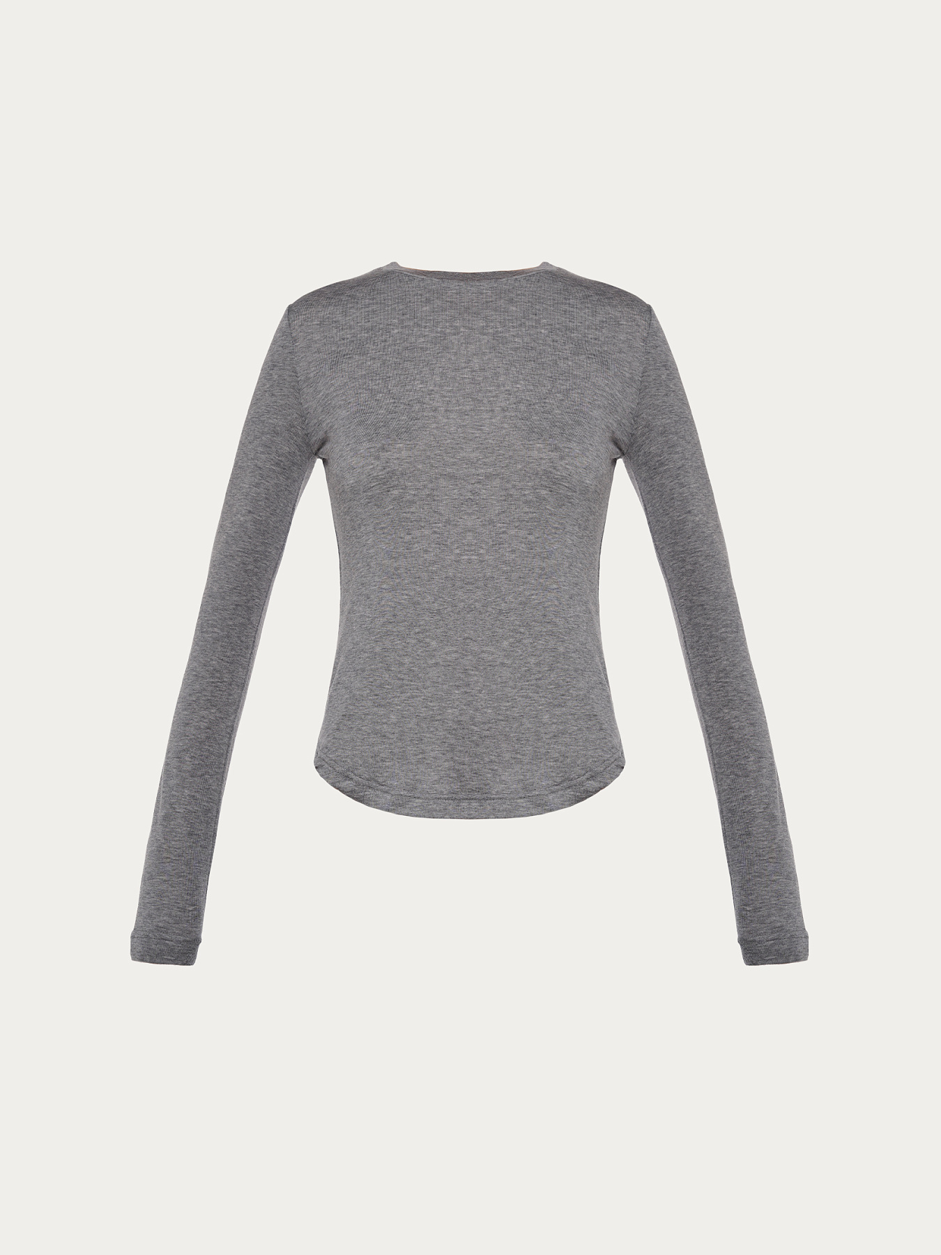 Состав ткани — модал, шерсть и спандекс — делает изделие тонким, невесомым и по-настоящему тактильным. Лонгслив мягко прилегает к телу и ощущается как вторая кожа.