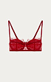 Бюстгальтер балконет в насыщенном красном оттенке, выполненный на мягкой бельевой сетке. Сверху проходит итальянское кружево — оно плотно ложится на груди по основе и не отходит при носке, сохраняя чистый, аккуратный силуэт.