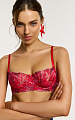 Бюстгальтер балконет на косточках с мягкими чашками из плотного итальянского кружева. В рисунке — изящное сочетание нескольких оттенков красного, в котором благодаря люрексовой нити по белью появляется мягкий мерцающий блеск, что делает изделие особенно насыщенным и утончённым.