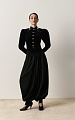 Брюки объемного кроя из итальянской костюмной шерсти. Благодаря сборке по верхнему и нижнему срезам создается характерный объем, при этом силуэт остается легким и пропорциональным.