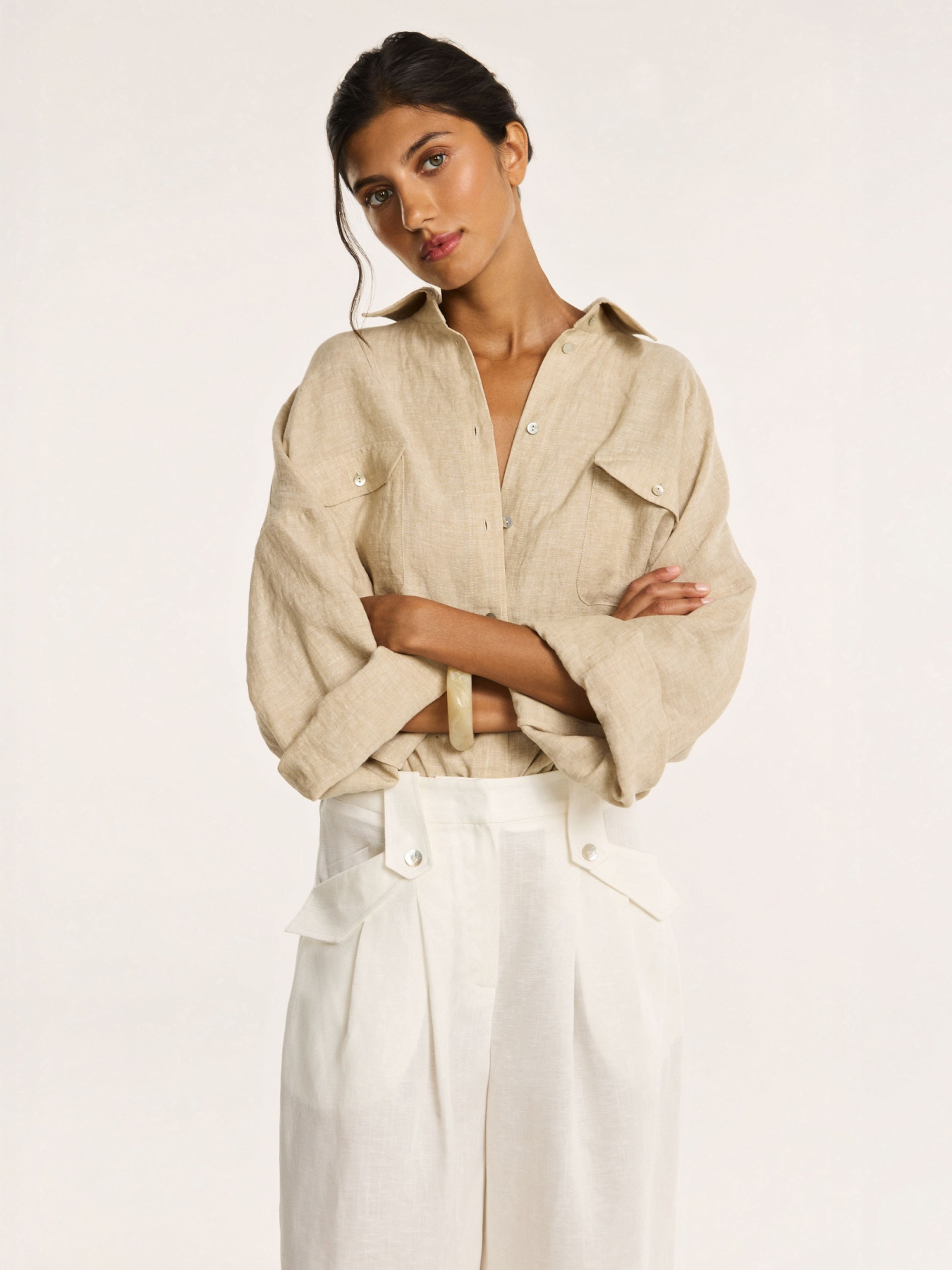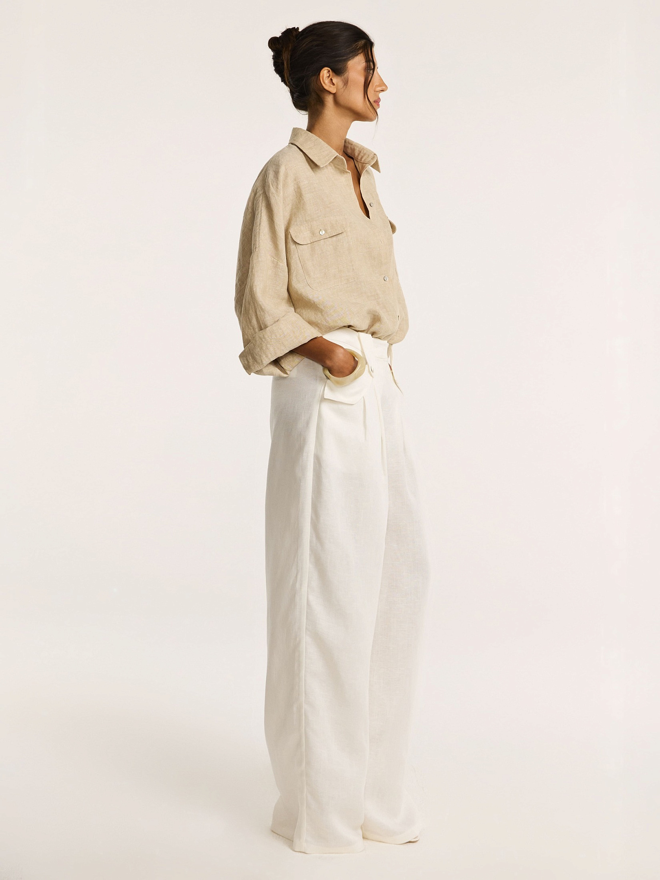Итальянский лён держит форму, создавая выразительный, но лёгкий объём.