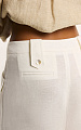 Средняя посадка и отрезной пояс с фигурными шлевками на пуговицах из натуральной ракушки с перламутровым переливом формируют аккуратные пропорции.