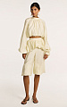 Резинка по нижнему срезу позволяет варьировать длину, регулируя объем ниже или выше колена. Благодаря этому модель легко меняет настроение образа — от более сдержанного до акцентного.