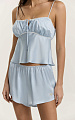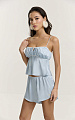Шорты из итальянской вискозной кади в нежно-голубом оттенке. Свободный крой и укороченная длина создают легкий, расслабленный силуэт. Верхний срез собран в мелкую сборку на аккуратную ажурную резинку, которая мягко фиксирует посадку.