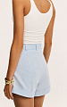 Шорты укороченные в голубом оттенке меланж — выверенная модель в нежном цвете сезона.