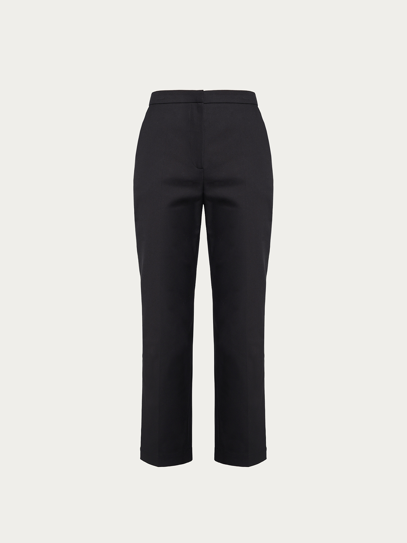 Укороченные брюки-сигареты на высокой посадке из итальянского хлопка с добавлением полиэстера и эластана. Плотная ткань эластична и хорошо держит форму — не вытягивается и не деформируется в процессе носки. Брюки плотно прилегают к телу, подчеркивая силуэт, при этом остаются комфортными.