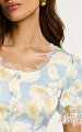 Укороченная блуза прилегающего силуэта в нежном голубом оттенке выполнена из принтованной итальянской вискозы с мягкой, струящейся фактурой.