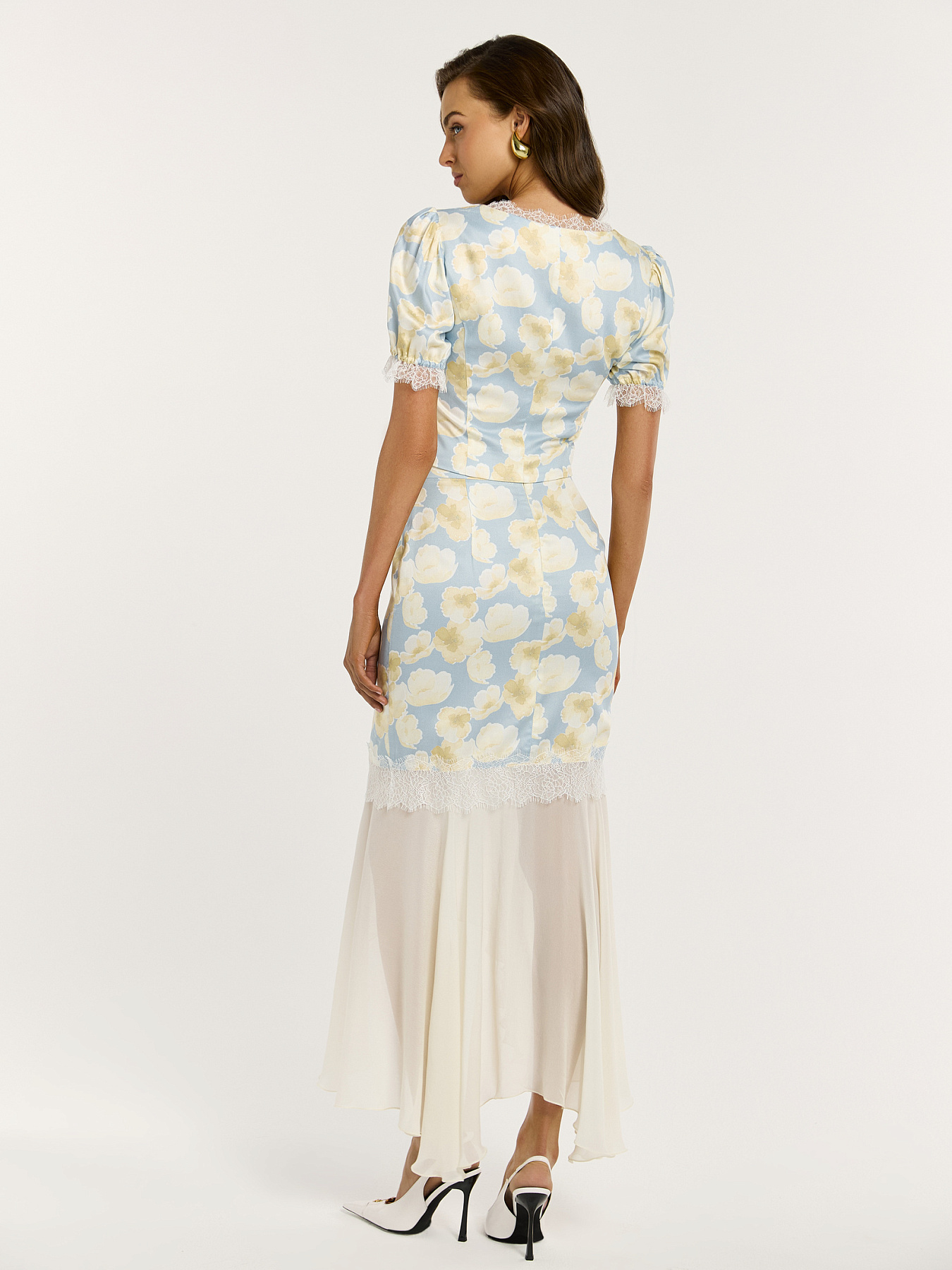 На небесном фоне распускаются маки в нежно-желтом оттенке — цветочный мотив был создан специально для этой коллекции нашим графическим дизайнером и эксклюзивно напечатан на фабрике в Италии.
