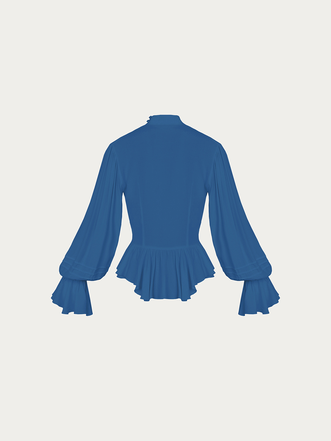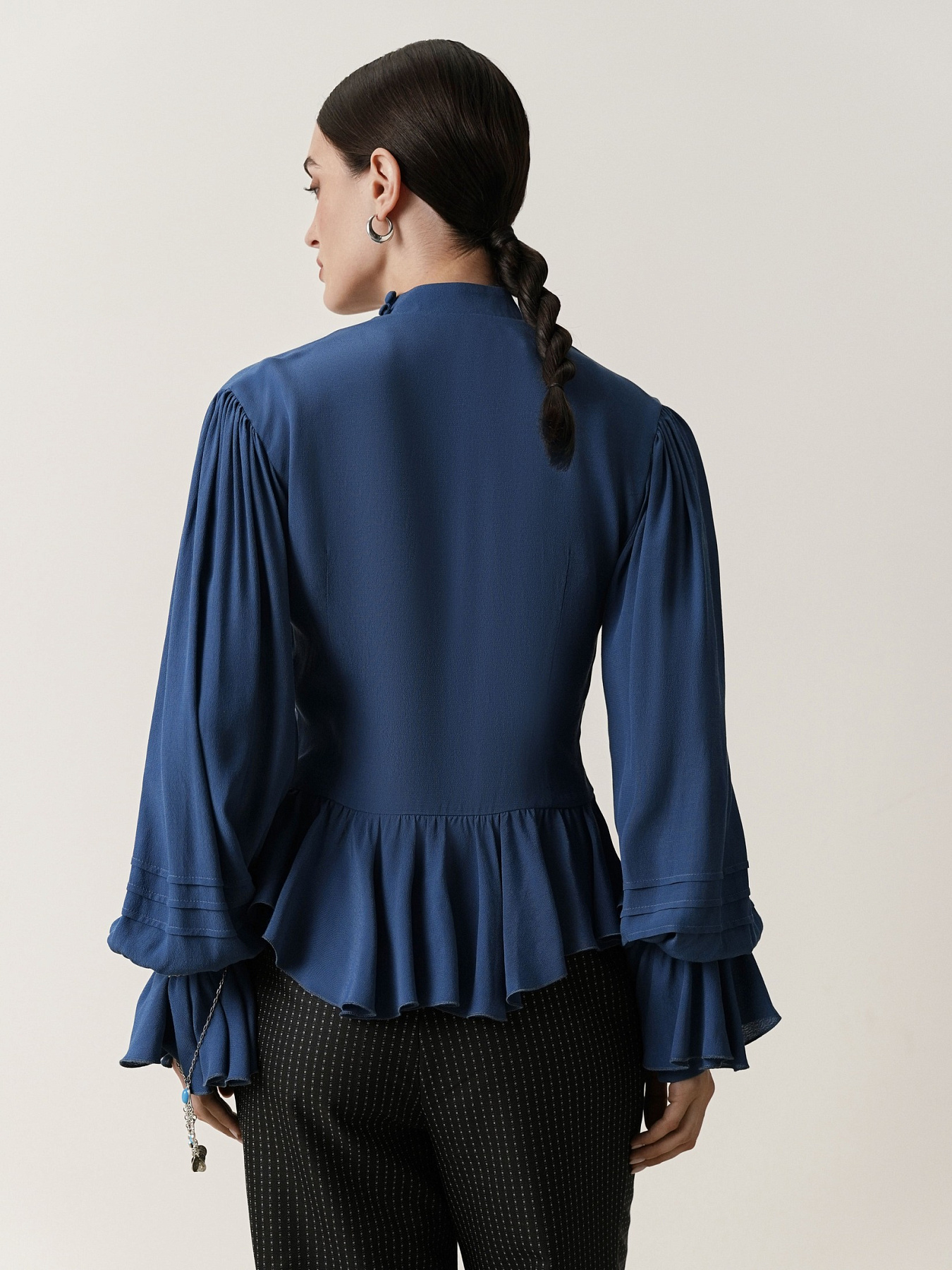 Блуза прилегающего силуэта с воланами из итальянского шифона.