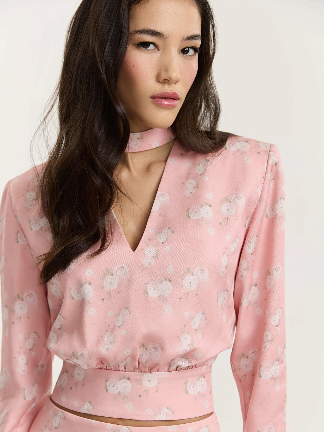 Блуза из принтованной вискозы в нежно-розовом оттенке.