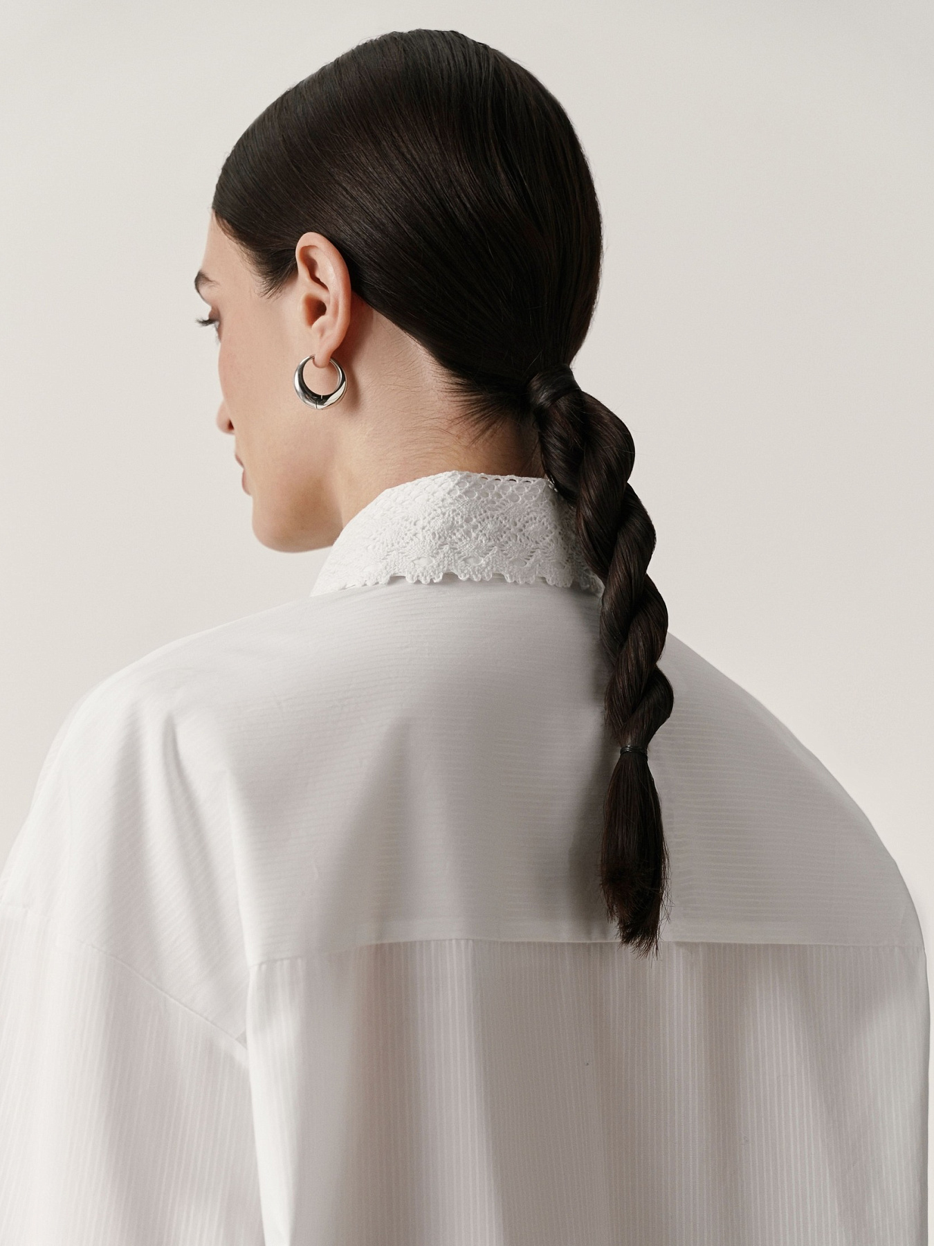 Рубашка свободного силуэта из премиального итальянского хлопка. Мягкая структура ткани придает образу объем и легкость.