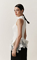 Боковые швы укреплены регилином, что поддерживает форму и визуально подчеркивает талию. По нижнему срезу, вдоль горловины, стойки и верхней части спинки расположено фигурное хлопковое кордовое кружево, которое вырезается и выкладывается вручную.