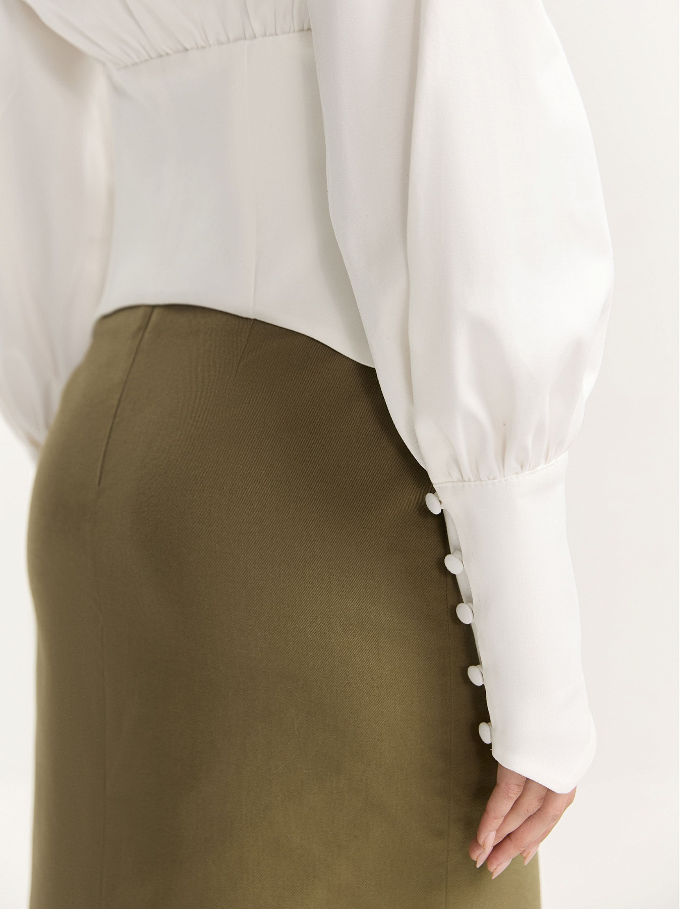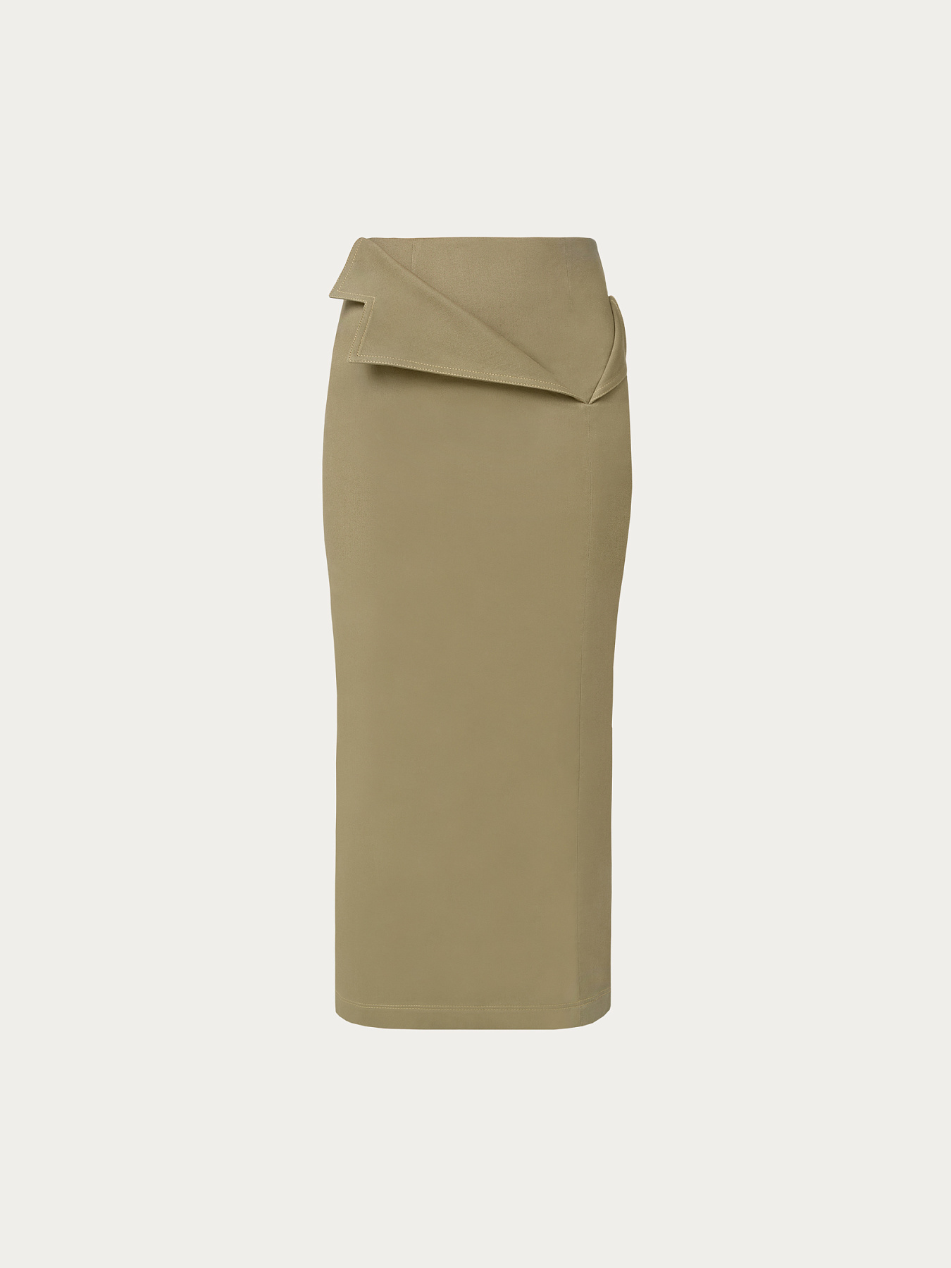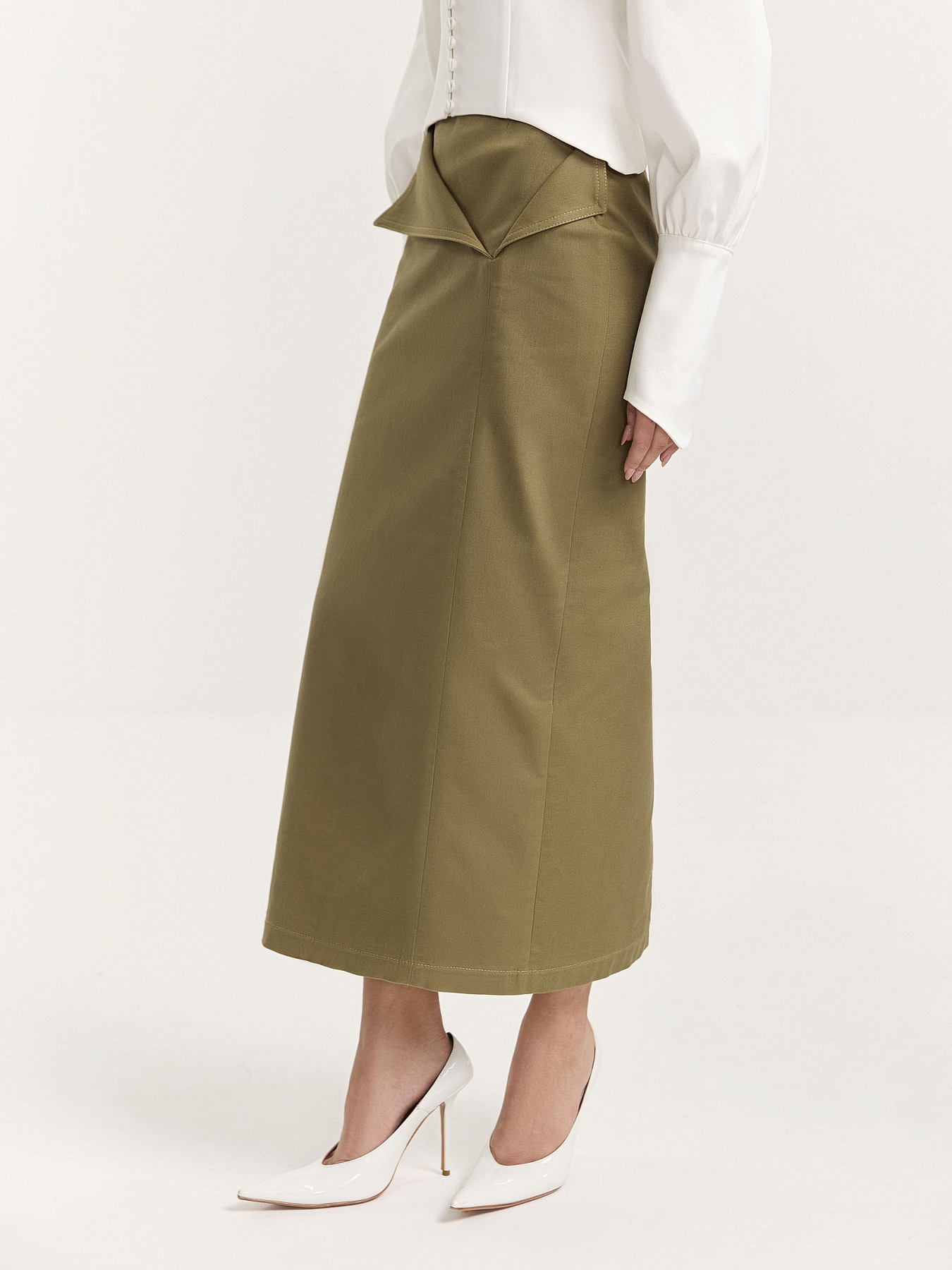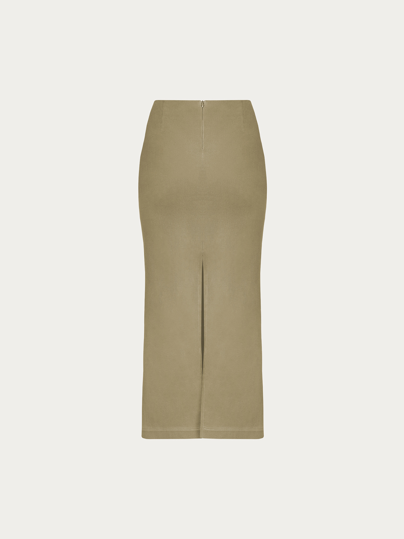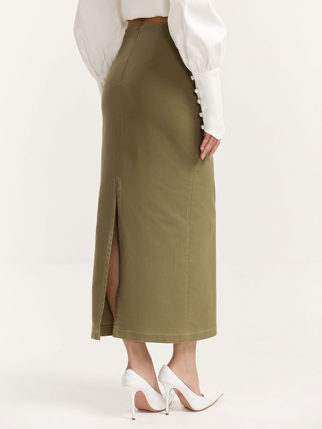 Юбка-карандаш длины миди из итальянского хлопка твилового переплетения, по фактуре напоминающего деним.