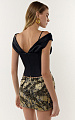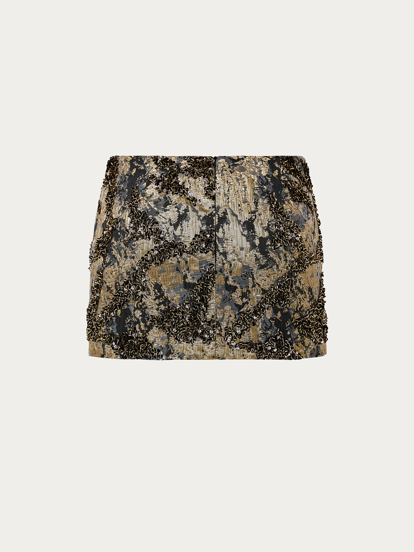 Юбка мини из итальянской ткани с пайетками, выполненная на основе черного жаккарда с золотистой нитью.