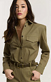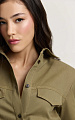 На уровне груди — декоративные клапаны, имитирующие карманы. Застежка — цельнокроеная планка на петли и роговые пуговицы. Рукав рубашечный, двухшовный, по низу рукава манжета, застегивающаяся на петлю и пуговицу.