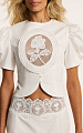 Топ из итальянского хлопка в молочном оттенке — модель с выразительным силуэтом и тонко выстроенной кружевной деталью.