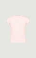 Футболка полуприталенного силуэта из мерсеризованного хлопкового трикотажа в нежно-розовом оттенке. Небольшой процент эластана обеспечивает комфортное прилегание и помогает изделию лучше сохранять форму. Укороченный рукав и средняя длина делают модель универсальной для повседневных сочетаний.