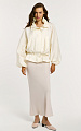 Объемный рукав реглан собран на резинку: она фиксирует его на запястье и позволяет варьировать степень объема. Воротник-стойка придает образу графичность и защищает от ветра.