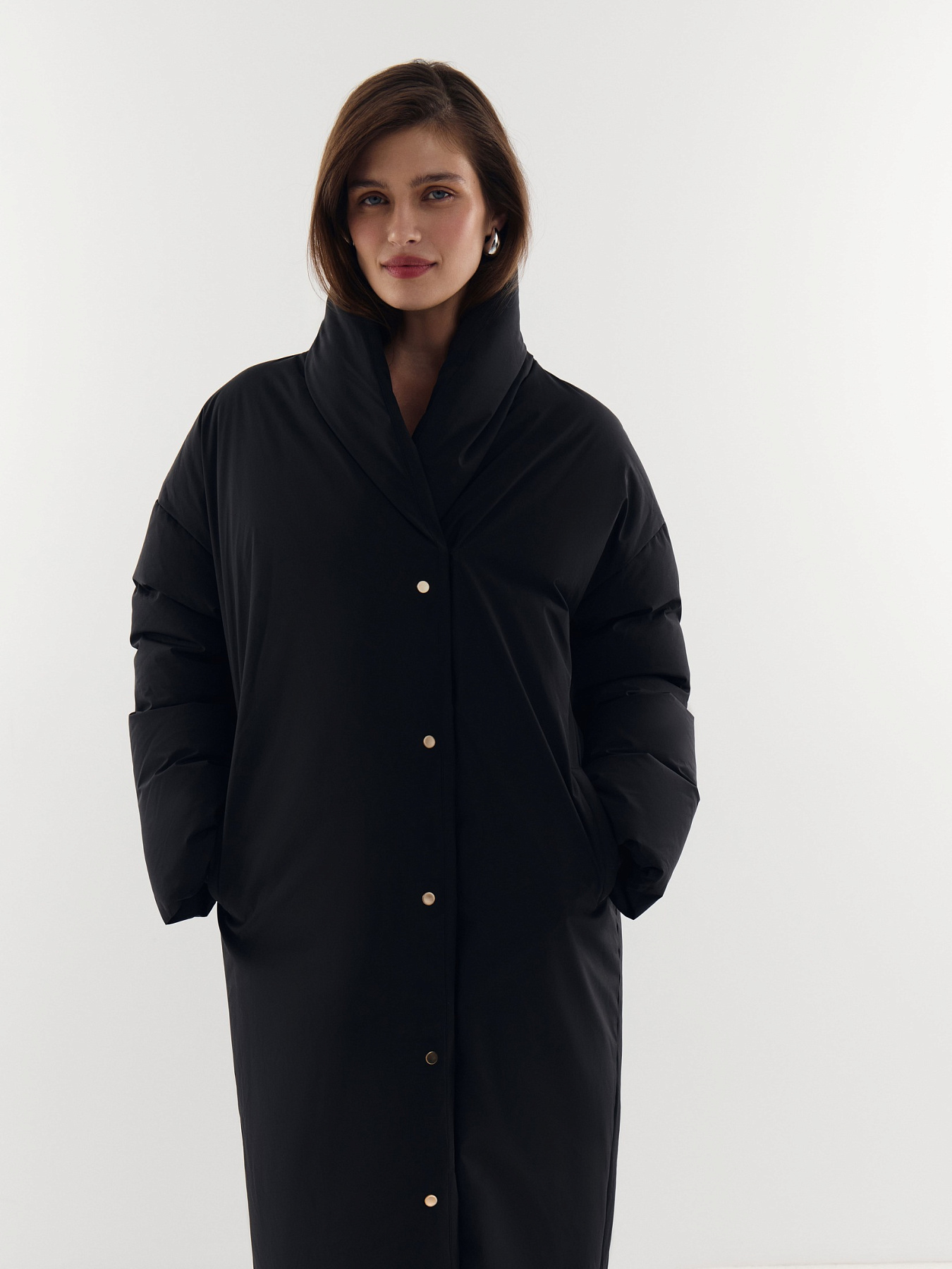 Пуховик объемного силуэта с длиной макси — универсальная модель для городской зимы.
