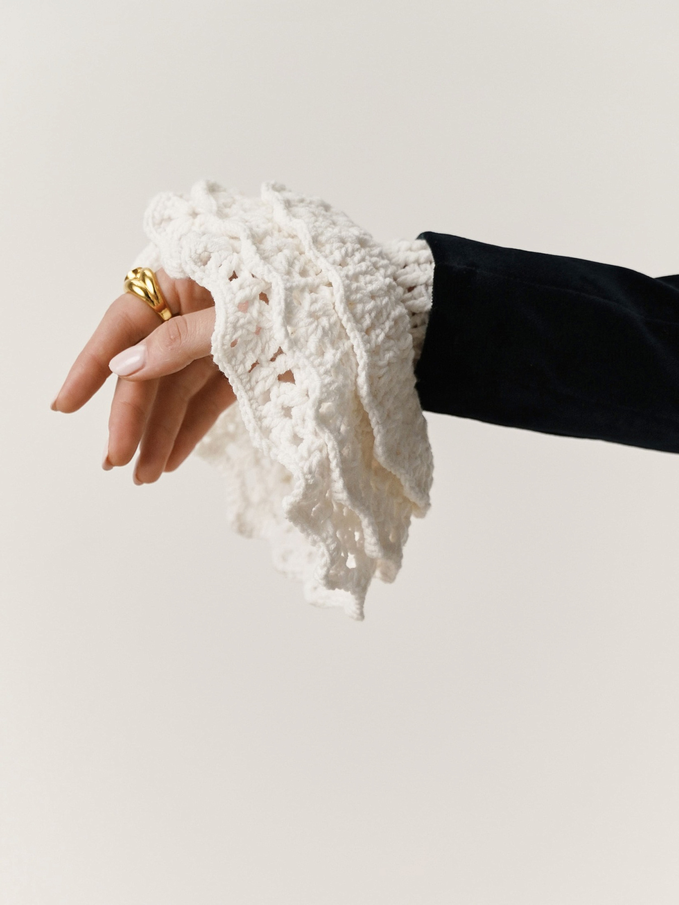 Вязаные манжеты на рукава — акцентный аксессуар, подчеркивающий индивидуальность и добавляющий образу выразительности. Изделие связано вручную нашими мастерами из мягкой хлопковой пряжи, что обеспечивает комфорт и приятные тактильные ощущения.