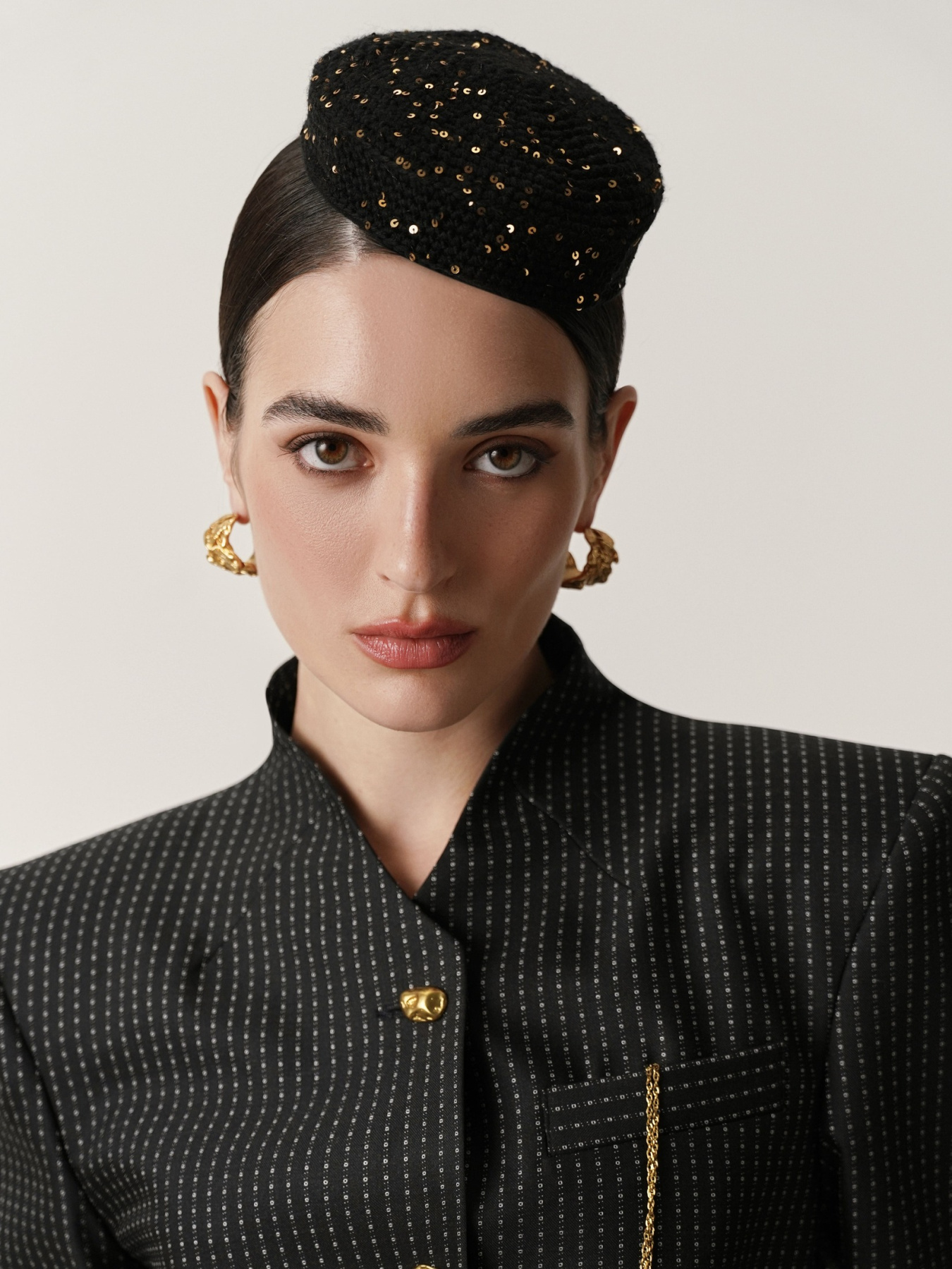 Тюбетейка ручной работы — переосмысление национального головного убора в современном контексте. Связана вручную из сочетания двух видов натуральной пряжи с добавлением деликатной золотистой пайетки, создающей мягкое свечение при движении.