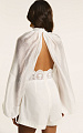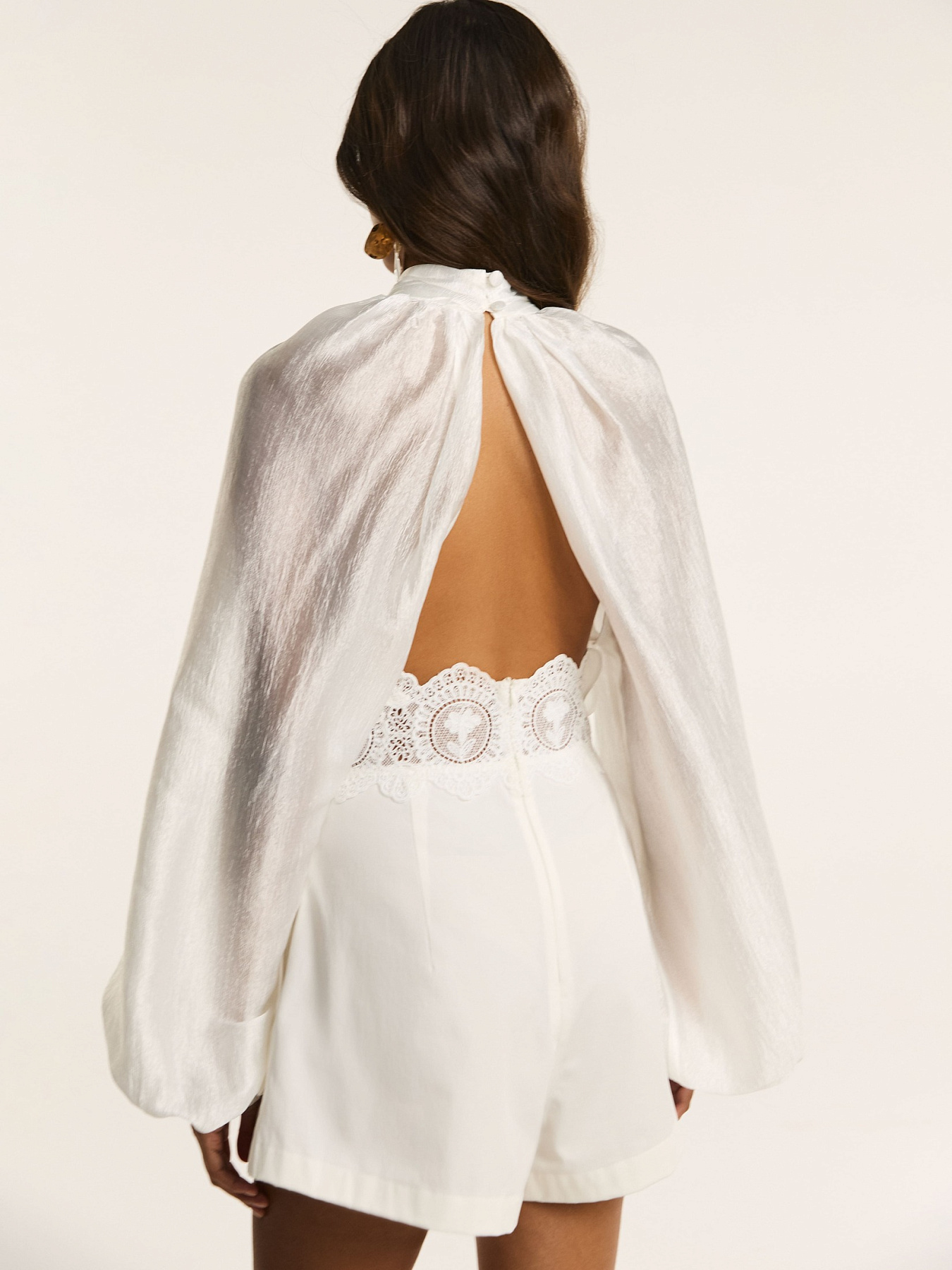 Комбинезон с открытой спинкой в молочном оттенке — модель, в которой воздушность верха и чёткость низа создают безупречный баланс.
