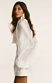 Объёмный верх из полупрозрачной итальянской вискозы с перламутровым переливом и жатой фактурой создаёт ощущение лёгкости и благородного сияния. Воротник-стойка на обтяжных пуговицах акцентирует линию шеи, а объём создается из деликатных сборок по горловине и талии.