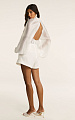 Низ выполнен из итальянского хлопка: укороченные шорты с фигурным нижним срезом и застроченными складками на передних половинках формируют чёткий, собранный силуэт.
