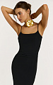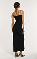 Платье прилегающего силуэта в деликатном черном цвете — лаконичная и утонченная модель с акцентом на чистоту линий и безупречную посадку.