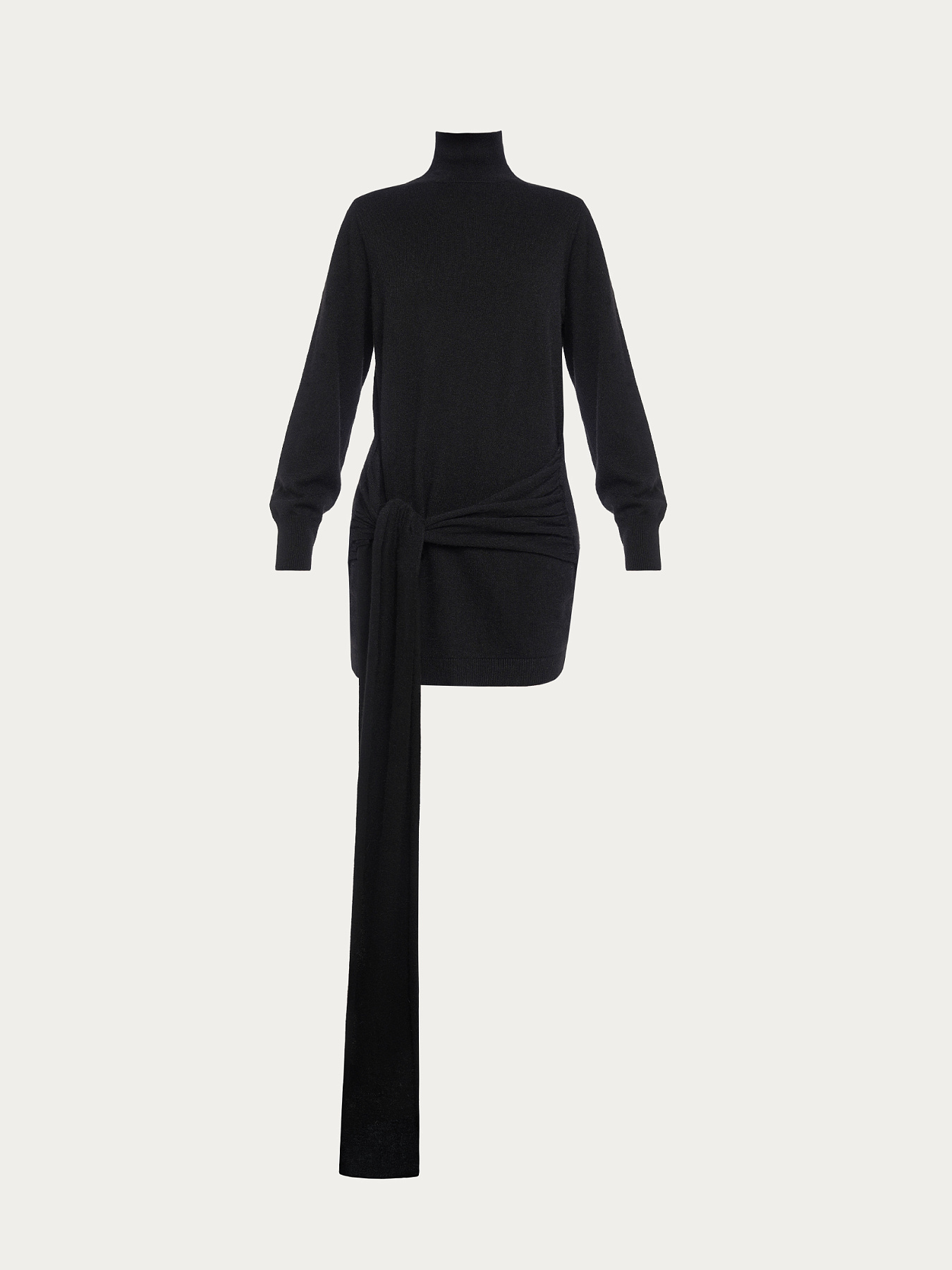 Драпировка и завязки по низу позволяют варьировать посадку и формировать приталенный силуэт, вы можете фиксировать их на бедрах в разных вариациях в зависимости от стилизации и настроения.