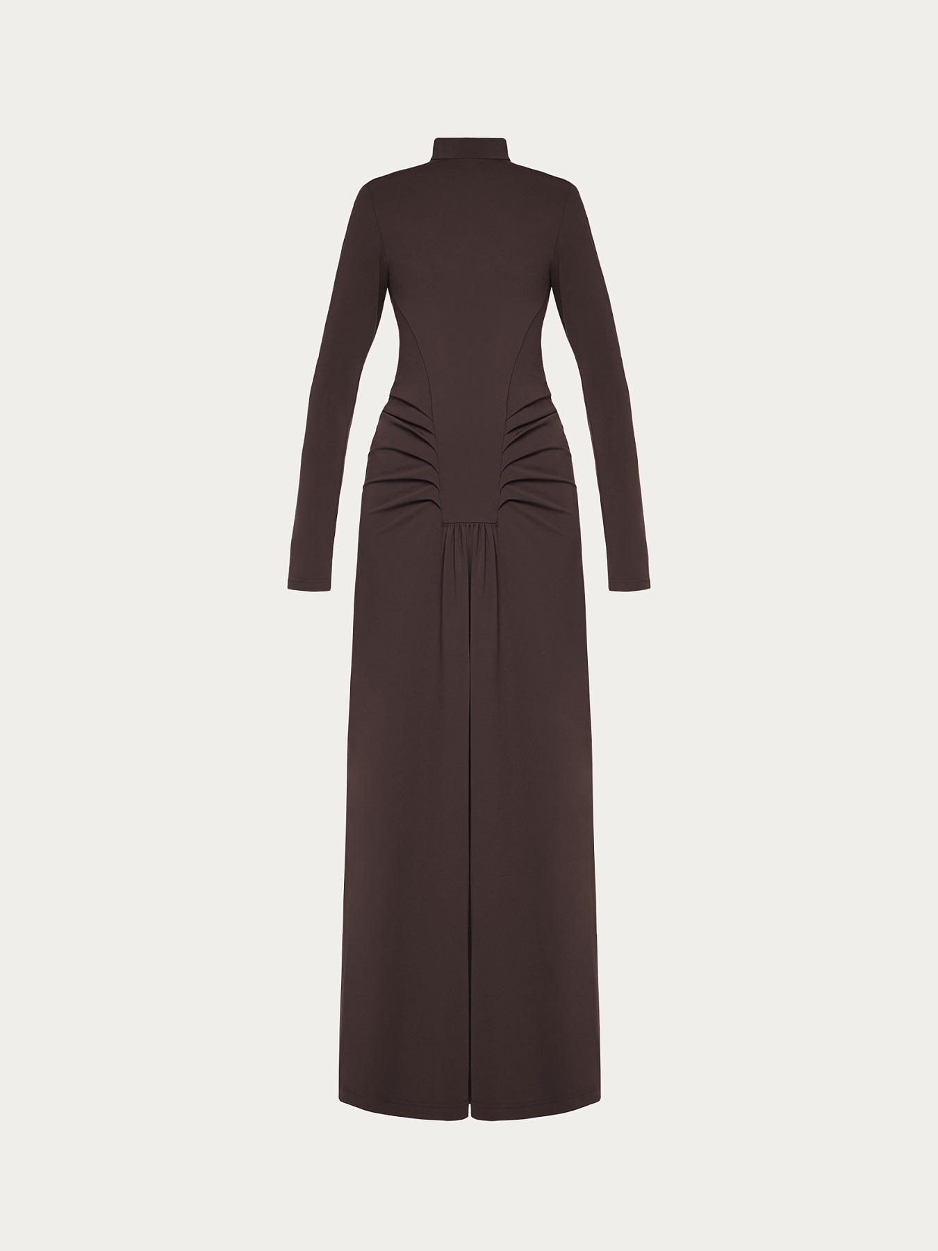 Макси-платье из итальянского вискозного трикотажа в глубоком коричневом оттенке.
