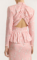 Главный акцент — спинка: планка на обтяжные пуговицы и прорезные петли дополнена сборкой, создающей мягкие складки. Планка заканчивается на середине спины и переходит в треугольный вырез, деликатно открывающий спину.