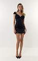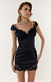 Платье корсетного силуэта мини из итальянской ткани дюшес в глубоком черном оттенке. Лиф выполнен с отрезными чашками, верхний край которых украшен деликатным итальянским кружевом.