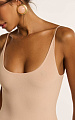 Верхняя часть выполнена из плотного трикотажа — она прилегает к фигуре, чётко обозначая силуэт.