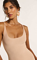 Глубокий округлый вырез спереди на тонких бретелях добавляют образу лёгкость и женственность.