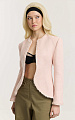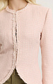 Жакет приталенного силуэта из итальянского твида. Фактурное переплетение нитей в розовой и белой гамме создает мягкую глубину и живую поверхность ткани.