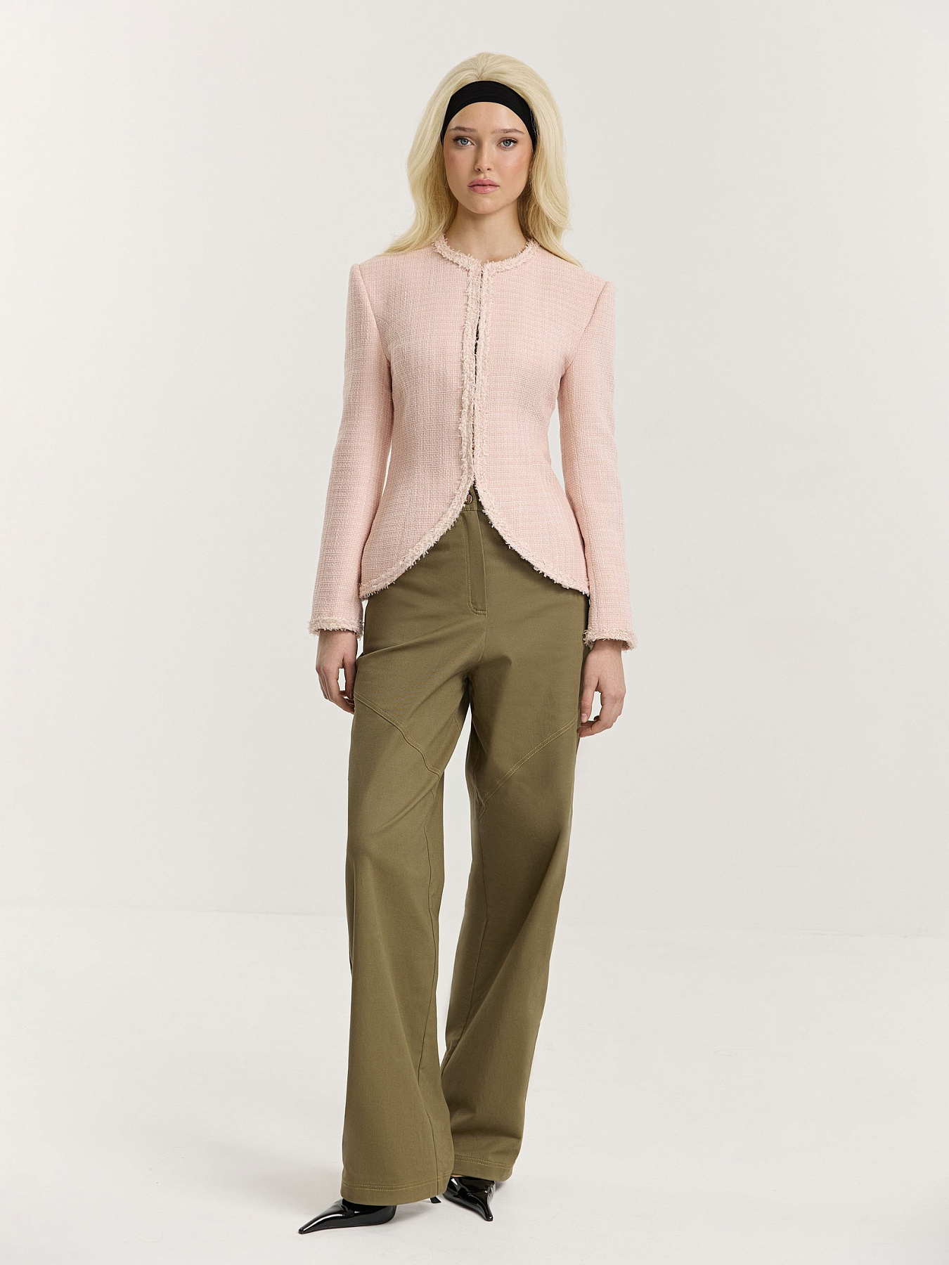 Выделенная линия плеча формируется подплечниками, подчеркивая собранный, аккуратный силуэт.