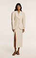 Модель выполнена из итальянского льна с добавлением вискозы: ткань средней плотности хорошо держит форму, формируя четкий силуэт с мягкими линиями.