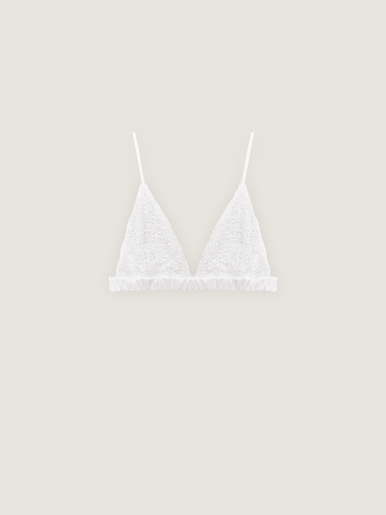 Миниатюрные пайетки расположены так близко друг к другу, что практически полностью скрывают эластичный текстиль, создавая эффект сверкающей поверхности.
